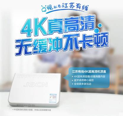 江蘇有線4K超高清機頂盒,兼具廣電真4K、高清電視直播、時移回看、互聯(lián)網(wǎng)視頻點播、人工智能語音控制、視頻通話、同屏推送等眾多功能。