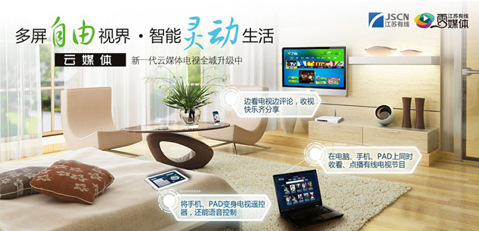 云媒體電視是江蘇有線根據(jù)國家三網(wǎng)融合試點要求,堅持技術(shù)、業(yè)務(wù)、服務(wù)三個創(chuàng)新,按照“鞏固傳統(tǒng)數(shù)字電視業(yè)務(wù)、全力拓展互聯(lián)網(wǎng)數(shù)據(jù)業(yè)務(wù)、重點開發(fā)視頻增值業(yè)務(wù)”的全業(yè)務(wù)發(fā)展思路自主研發(fā)的第三代數(shù)字電視系統(tǒng)。